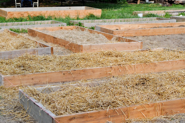 My arms are all jell-o-ey (how do you spell that?) after shoveling many a wheelbarrow load of compost to line my potato beds today. I’ve planted forty pounds of potatoes, in three varieties. We have always used the on top of the ground, covered in straw method of planting potatoes. First I cover the ground with a couple inches of compost, then a layer about three sheets thick of newspaper. Next I lay my tubers right on top of that newspaper and top it all with about six inches of straw. As the plants grow, I will add more straw. In the past we have put the tubers directly on the soil, but I think the newspaper will help with weeds.