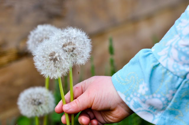 I was taking pictures of these dandelions when a little hand popped into view.