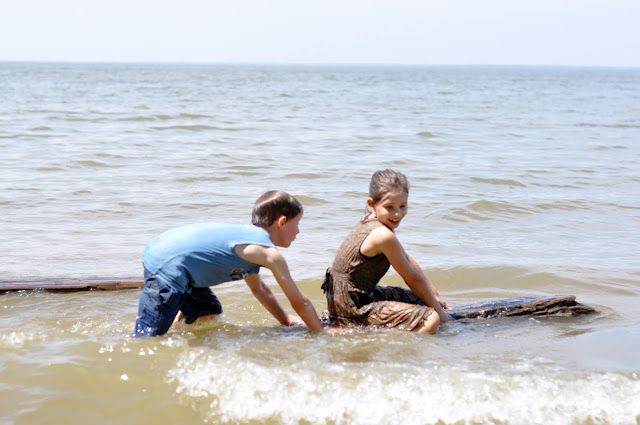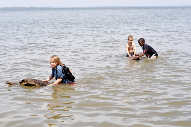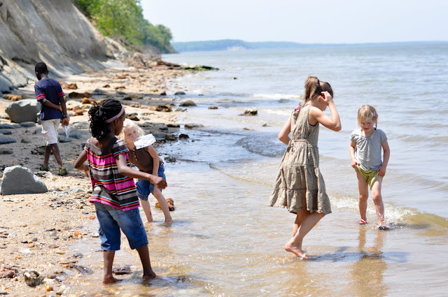 Saturday we did something we don’t do often enough: we spent the day with friends! My friend Laura, and her husband and their seven children drove up for a visit, so we took them, yes of course, fossil hunting. So that makes three days last week that we hit the shores of the Potomac to hunt for fossilized shark’s teeth, bones, crocodile teeth, whale vertebrae, etc. I will have to take pictures of some of our finds later, including the almost three inch long Megalodon tooth I found (much to Seth’s dismay I now posses our largest complete tooth.) Anyway, the trip Saturday was more about having fun, and I think we accomplished that.