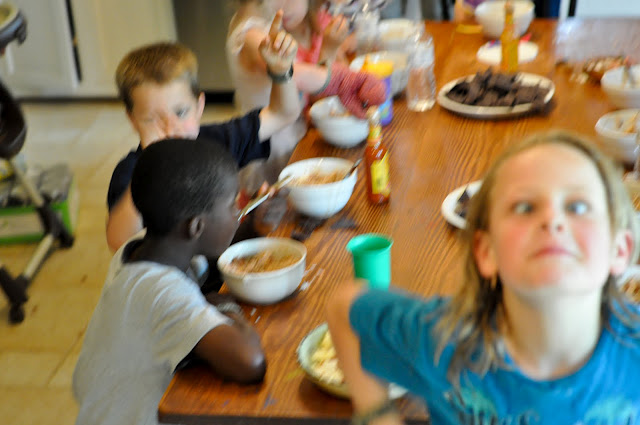 When we got back to our house, we fit ten of our children around our farm table for dinner.