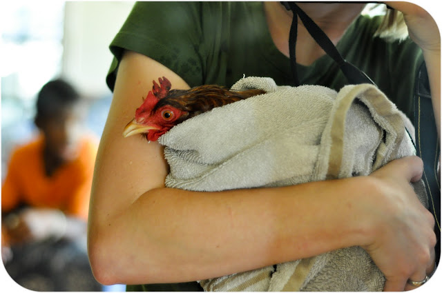 p.s. This morning I didn’t expect Trouble to be alive when I went to check on her, but just in case I took her a bowl of oatmeal with a handful of blueberries from our precious freezer stash. She was not dead and she picked all the blueberries out of her oatmeal. So, the decision we made today was to bring Trouble inside and give her a bath. That was interesting. She is resting in our downstairs bathroom now and likes the latest concoction I created for her to eat: cooked egg yolk, rolled oats, a bit of honey, cottage cheese, and grated apple. She is very alert, but she just won’t stand up! Having her in the bathroom will make it much easier to keep a close eye on her and excercise her legs every hour or so and offer her food and water.