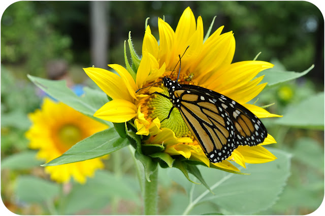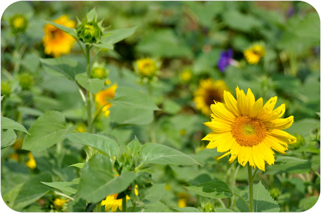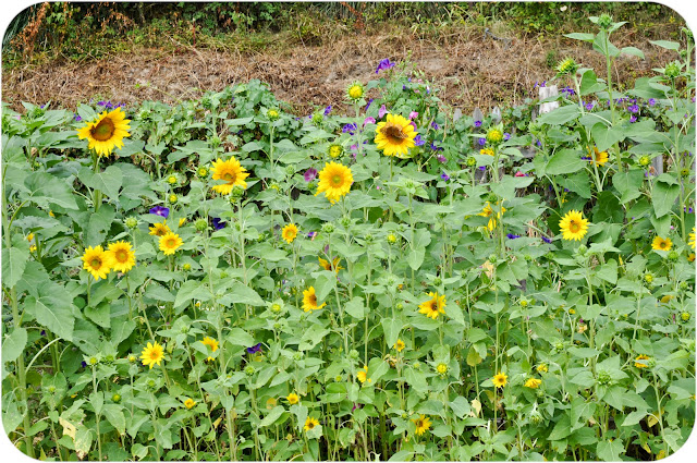 My favorite part of the garden right now are the two beds the kids and I planted with sunflowers in early August. They started blooming last week.