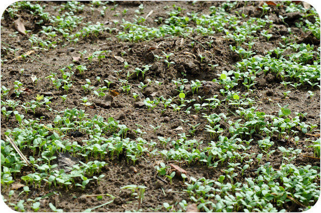 That’s my crimson clover sprouting. I love crimson clover. I need to buy some agricultural mustard to plant with it.