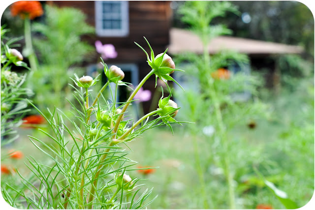 This year I interplanted our okra with zinnias and cosmos which was pretty stupid. They all competed with each other for light and grew tall and gangly. I am leaving the flowers for awhile longer so we continue to have something for Larkspur to pick as long as possible.
