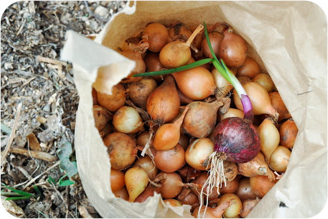 I planted about three pounds (150 feet or so) of onions today, hoping for big fat spring onions. We are just beginning to run out of the onions I planted this spring and harvested months ago.