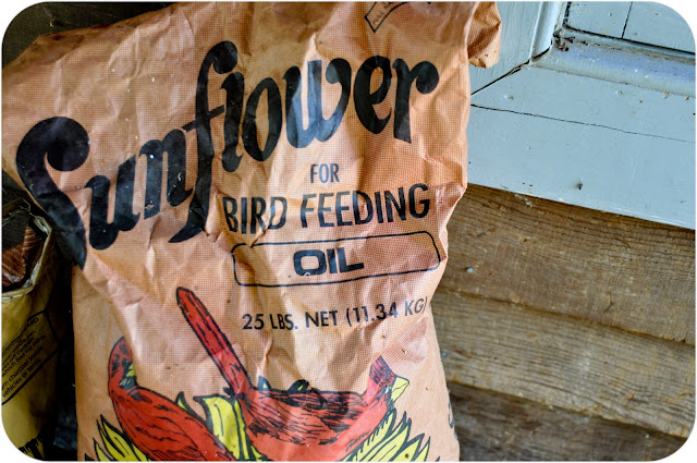 I cut down all the tall sunflowers today that had gone to seed, and propped them all but this large one against the fence for the birds.