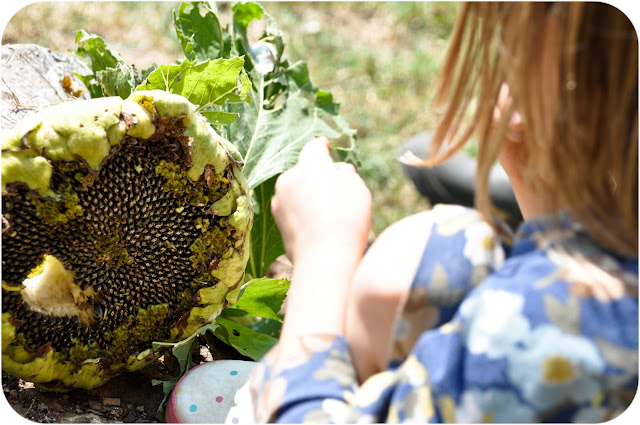 The kids snacked on these seeds for a little while, and then the chickens moved in to finish them off.