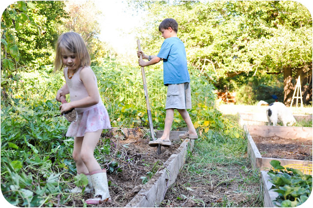 And while Jonny and I were working in the garden today, the boys were working on their fort in the woods. They were very proud to show us their progress. Today they dug a hole, and installed a hollow log to use for a toilet. A hinged lid was added along with a brick privacy wall. The assured me that this toilet is only for “tinkling” in. Larkspur threw a super awesome tantrum when I informed her that she is not to use it at all. I promise I am a nice mom, a pretty laid back mom even, but I have to draw the line somewhere! Am I terrible for telling her that young ladies use the proper toilet in the house, with the door closed ?” She sure thinks I am!