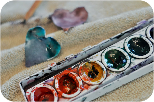 Larkspur would like me to spend my time cutting out little paper hearts for her to paint. Today she discovered that she can do it herself. I am the happy recipient of many little watercolored hearts.