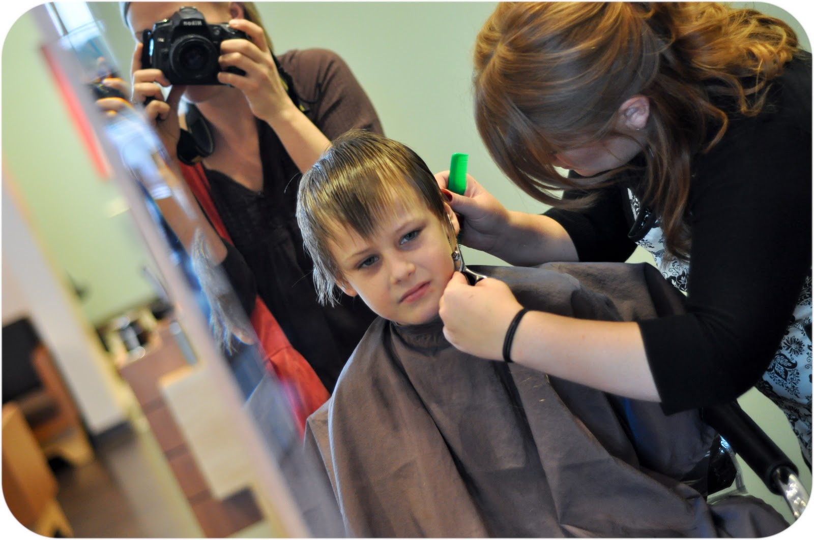 As his hair dropped to the floor, I actually started getting excited. He looks like a little boy again, younger somehow. And mama always likes her kids to look as young as possible so she can pretend they aren’t growing up, right?