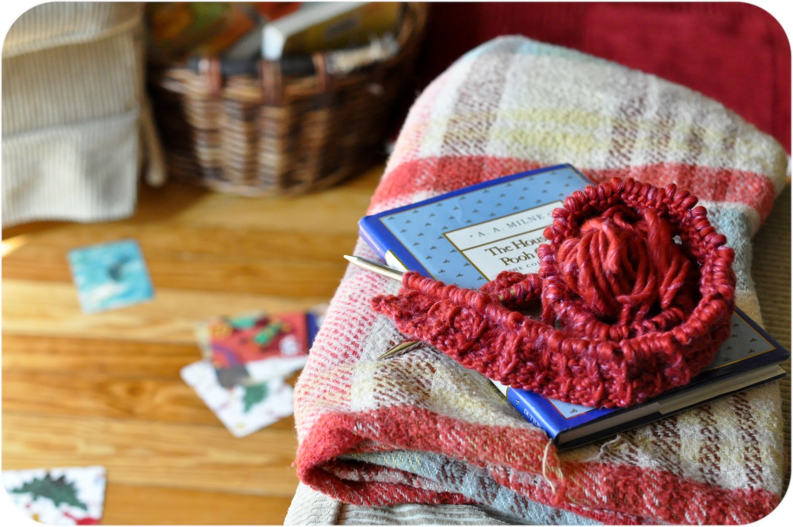 , but I have moved on to another (few) knitting projects, including a newly cast on Phoebe’s sweater. I loved the way Beatrix’s turned out so much that I just had to knit another, this time for Larkspur. I am pretty excited about this red yarn, despite the fact that it is most likely going to pill like crazy.