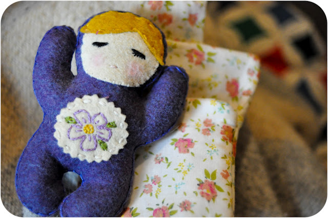 p.s. the pouch is made from cotton fabric with cotton batting, and the dolly is made with wool blend felt, and stuffed with wool.