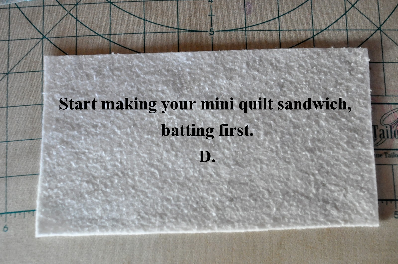 Choose your fabrics and cut the pieces out as directed above. You will need one small piece of cotton batting for piece D.