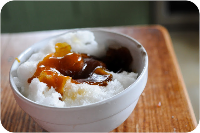 My kids were excited to try making maple syrup candy in a bowl of snow. This version is very tasty, but hard on the teeth.