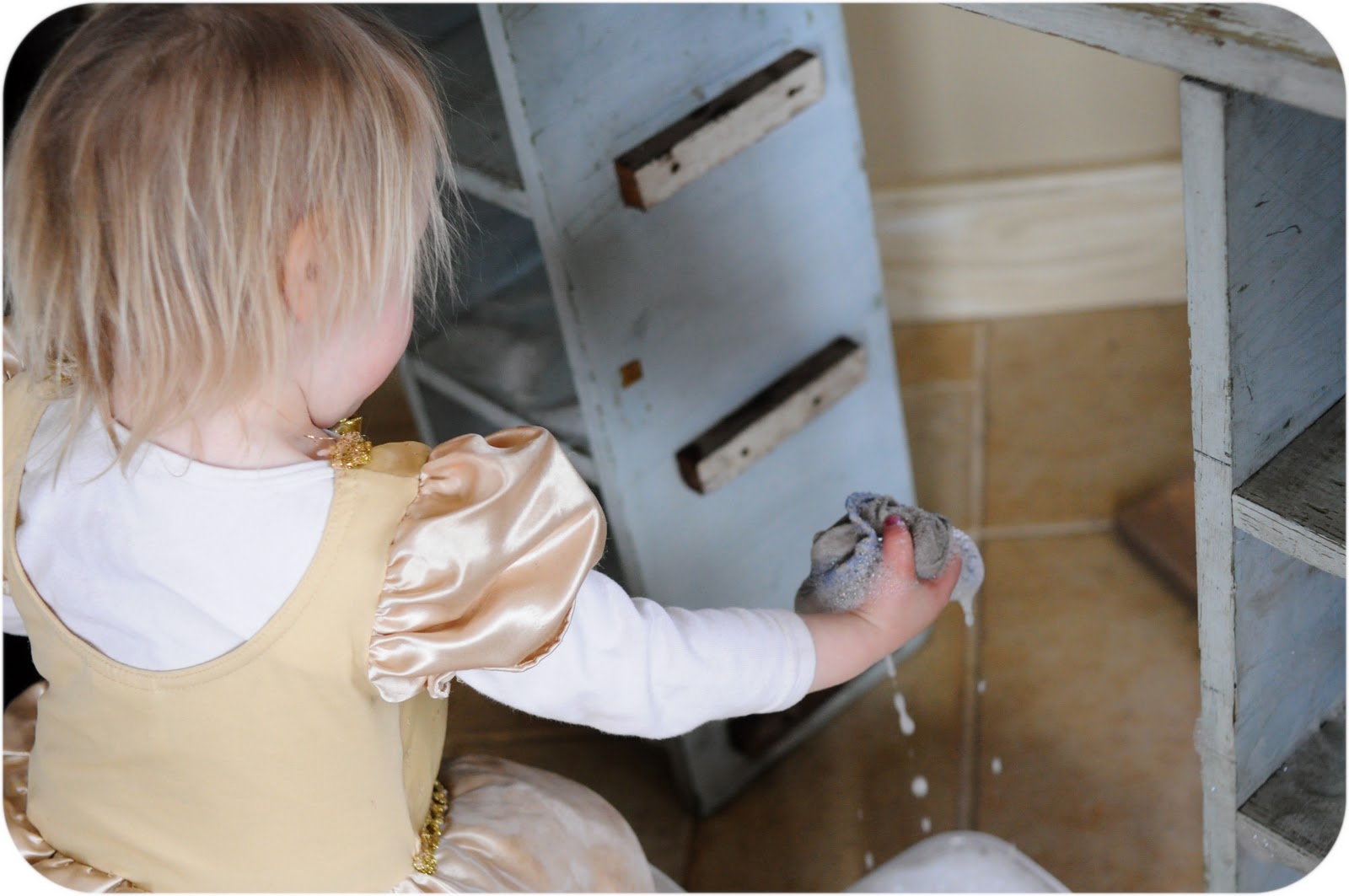 And finally, at a little roadside flea market, I found this old dirty shelf for three dollars. Somehow we managed to squeeze it in the van. At every stop on the way home, it had to be removed from the van before the kids could get out, but it was worth it. I am not sure that you can really tell, but it is a wonderful pale blue with dirt accents.