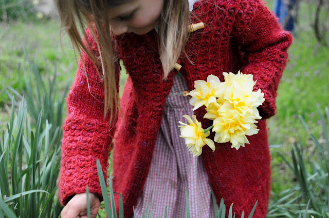 (p.s. The pattern for Larkspur’s red sweater is from Phoebe’s Sweater)