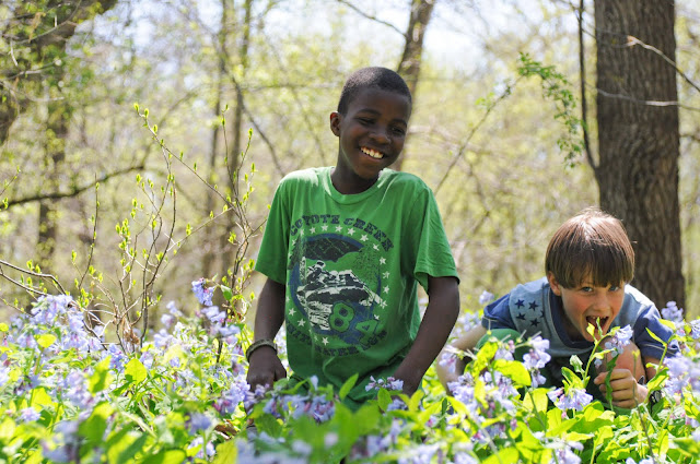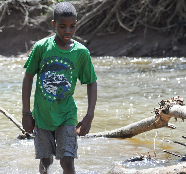 (Gabe had just taken an accidental swim in the creek and was super cold in this and the following photos)