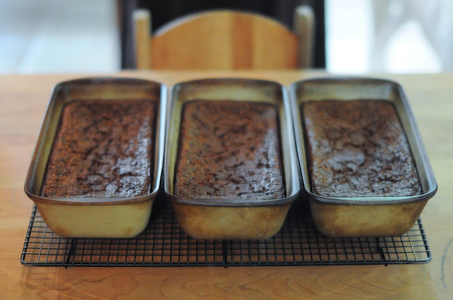 banana bread made with freshly ground spelt flour soaked overnight in buttermilk, recipe from Nourishing Traditions