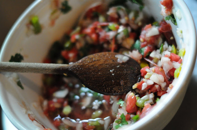 pico de gallo made from our homegrown onions and tomatoes, recipe from The Pioneer Woman Cooks