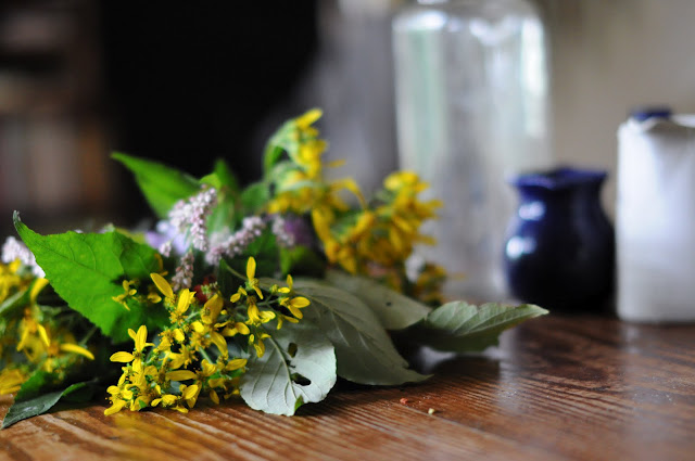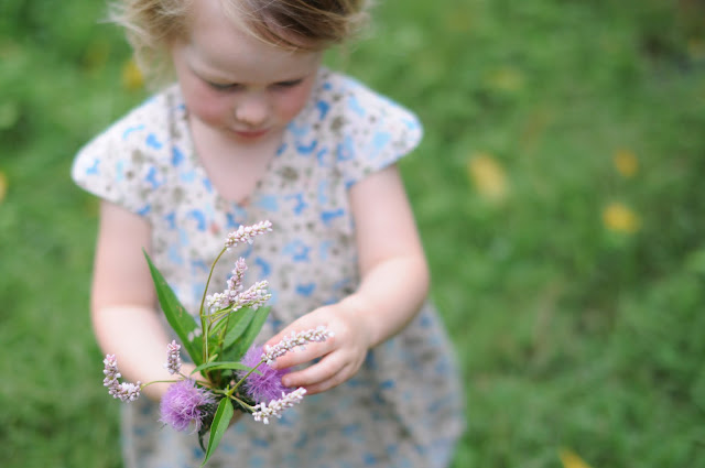 Every now and then I find it necessary to stop whatever it is we are doing (or trying to do) and take my little girls outdoors for a quick walk just to see what’s blooming. Even on the days when I look around and see mostly weeds (keeping up our property fell to the bottom of the priority list these past couple of years), my girls on the other hand see an abundance of flowers. When we get back indoors I gather a collection of vessels and my little girls can spend some time arranging their flowers, and maybe I can snatch a few minutes to do whatever it was I was trying to do in the first place, assuming I remember what that was.