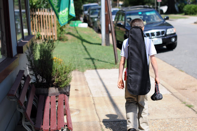 On Tuesday, Keats and I (and Silas of course!) made the journey to a small Richmond violin shop to rent a violin and purchase the other necessary supplies. During the week leading up to this day, which also happened to be the day of his first lesson, Keats counted down the days and never stopped talking about the upcoming event. One night, just before bed, Keats mentioned that his lesson was “x” number of days away and then went on to say, “You know when it’s the day before your birthday and you just hate it so much because you still have to wait another day?” He quickly ducked out of the room, not usually one to say so much about how he feels, and I smiled and smiled.