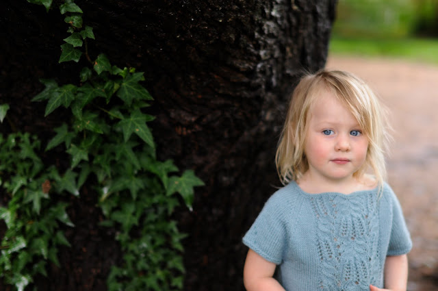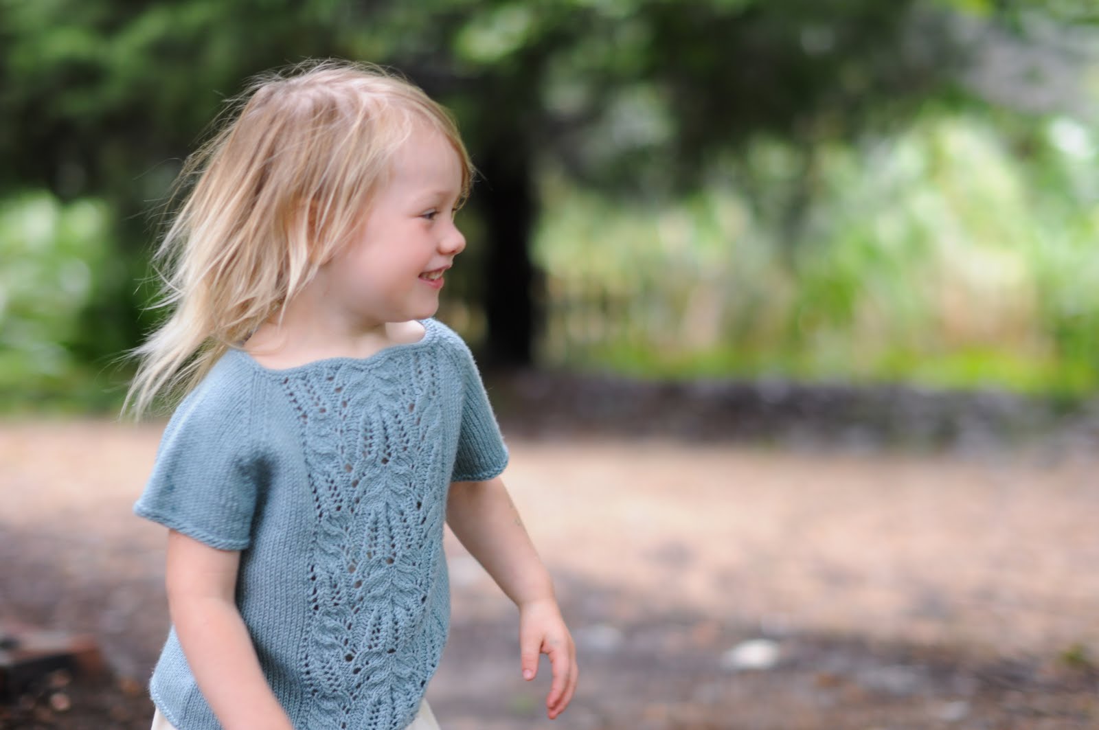 When I first saw this pattern, I was overcome with an intense need to knit it immediately, and I am glad that I did. If you’ve never knit lace, but you can knit in the round, this is a great first lace project. I promise it isn’t difficult, and it is very satisfying. I made a couple of mistakes in the lace panel and it still turned out really well. I think it is going to look really cute layered over Beatrix’s wool/silk long underwear shirt when the weather cools off. She will still fit it next spring as well.