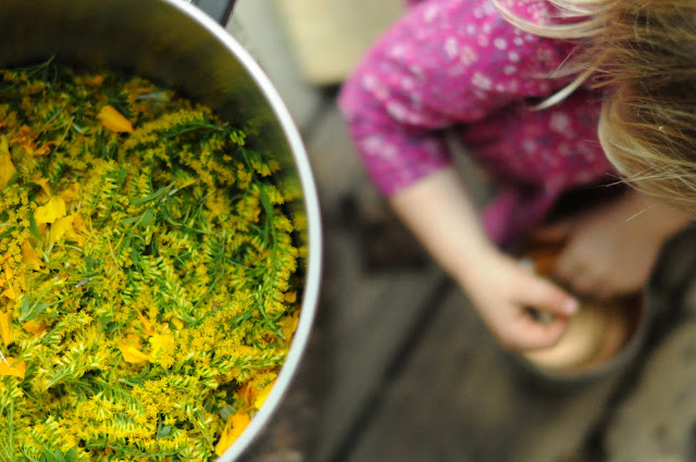I have a pot of goldenrod simmering on the stove, hoping to dye some more yarn tomorrow. Rather than that feeling like “one more thing,” the process will be calming over the last few days of this crazy week.