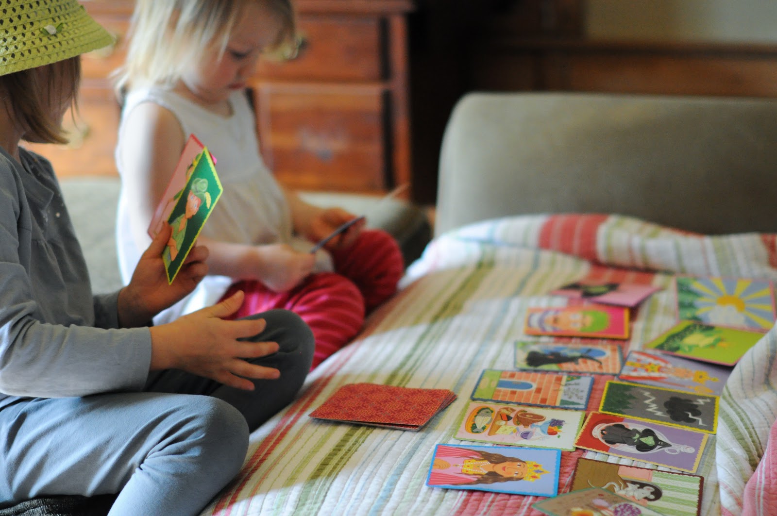 Wearing fancy hats received from their Mimi, and loving them.