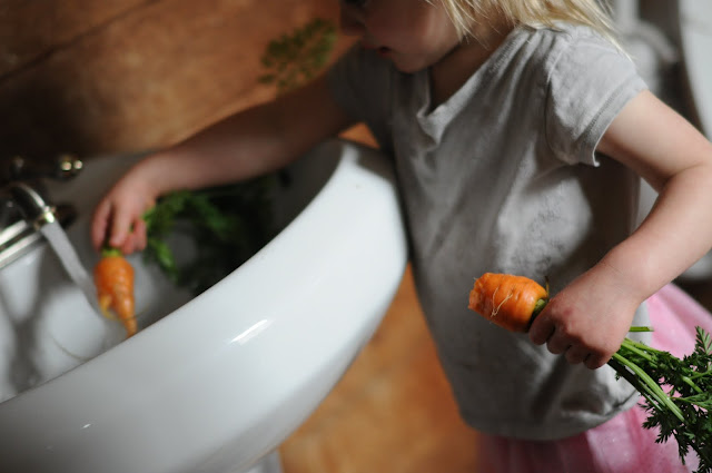 The weather is mild here this week. My children have discovered the carrots that I planted late in the summer. It took me a little bit to figure out why the bathroom sink is constantly full of dirt. Now I know.