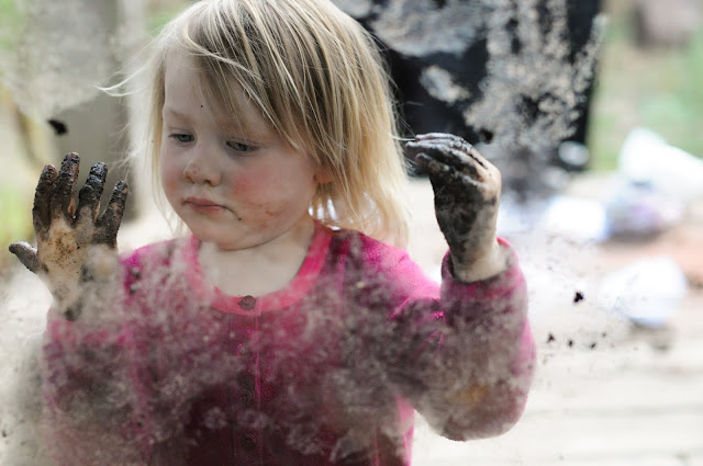 Last weekend Jonny cleaned out the chimney, I cleaned out the little storage hole under our stairs where I store homeschool and craft supplies, and Beatrix made a giant muddy mess while still in her nightgown. She was so quietly, happily busy. The only way to keep her busy and occupied for long is to read to her, or, if she’s in the mood, to set her free with ample mud. I haven’t cleaned those muddy prints off the back door yet. I kind of like them, and we aren’t having company anytime soon.