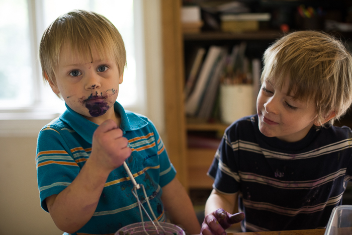p.s.  I almost cried when I came into the kitchen to find Job “making paint.”  I still haven’t gotten the purple out of the table, but his face is back to normal, so that’s good.