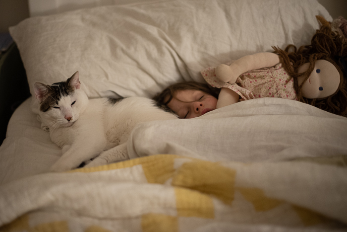This is usually the scene in my bed at the end of the day. Mabel goes to sleep next to me, and Giuseppe snuggles in next to her when I get up. He prefers Mabel’s sleeping self to her waking one. I typically do a few more things to get ready for bed myself after Mabel goes to sleep and Jonny carries her up to her own bed (or often Beatrix’s.) For a little while, I didn’t have the energy to do any reading at night, but maybe I just needed the right book. Now I’m rereading In This House of Brede and I look forward to it each night. I first read it about ten years ago, so it’s like the first time again! I hardly remember a thing other than loving it.