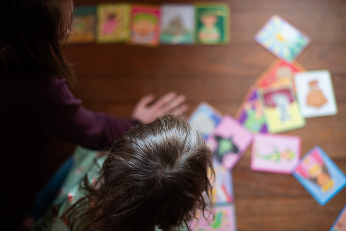 I excitedly ordered this “seasonal” puzzle (maple syrup season and all) but upon closer inspection, we all felt a little confused. Fall color, though a couple of trees have green leaves, snow on the ground, and I presume they are cooking maple syrup? The snow makes sense, but not the leaves. I told the kids to let it go and chalk it up to artistic license. In the first puzzle photo, those are the dogs wrestling at my feet. It’s their favorite place to play, which can be annoying and sometimes dangerous when I am trying to walk.