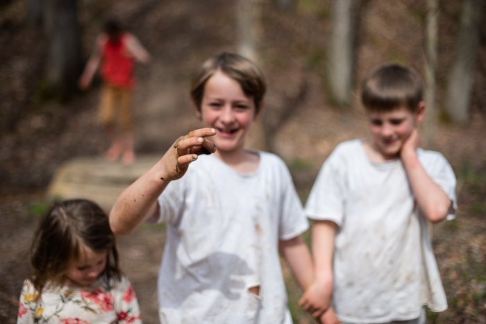 Silas is excitedly holding up a little leech for me to see in this photo. Ugh!
