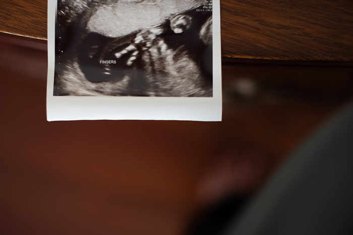 This was one of the pictures that the ultrasound technician printed for us at my 20-week ultrasound about six weeks ago. Our little one, making the sign of peace. I should read into that, right? I totally am.