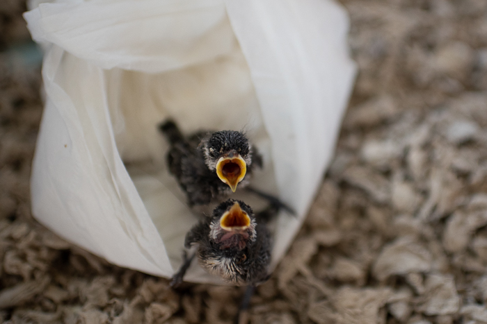 The following week, I got another text from Gabe while he was at work. There was a nest of baby birds fallen from a tree (half of them already dead) and the situation wasn’t safe for the two still living. Beatrix was thrilled at the thought of taking care of babies, and I reluctantly told Gabe to bring what I believed to be inevitable heartbreak home. I had a lot going on and couldn’t focus much attention on the babies, and honestly didn’t expect them to live beyond the first day anyway. Beatrix took it upon herself to be their little mother. The babies were unidentifiable at first, but using our bird’s nest field guide she correctly determined that they were chickadees. Beatrix fed them every 15 minutes from sunrise to late at night as they loudly demanded. It was an exhausting job, but she was so sweet and diligent in her care for “her babies.” To my surprise, they lived and in the five days that we had them, they began to develop feathers and that unmistakeable chickadee call. Of course, all along there was the knowledge that legally we needed to get them to a songbird rehabilitator. Karen found one for us, and at the end of our baby bird week, we took the day off school, and Beatrix and I drove an hour into what felt like the middle of nowhere. Beatrix transferred her babies’ care to a lovely woman who told her that she had done a great job. Bea was a little heartbroken saying goodbye, but she knew it was what was best for her babies. Last we heard, they were doing great and they have probably fledged at this point.