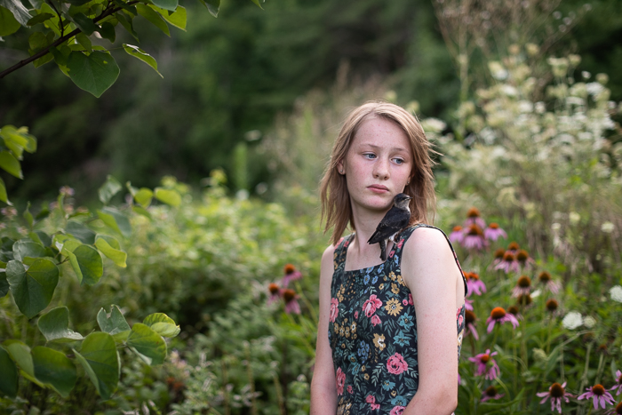 Speaking of kids growing up, Beatrix looks way too grown in this photo! I promise she doesn’t always look this old. She and Larkspur worked at a local farm over the summer and Beatrix came home with this juvenile purple martin one day. It apparently landed on her and wouldn’t fly away (I told her it was because her dress looked like a flowering shrub!) She was worried to leave it behind because of the barn cats that would have surely caught it. It was so weak, we assume from an infestation of mites, that it died later that evening before we could get it to help.