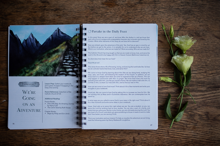 p.s. We started our new homeschool year this week. I hadn’t planned to start until September but decided that getting started before Keats leaves this weekend would be a good idea. I am very excited about using Into the Deep for catechesis for Silas, Job, and Mabel. Over the summer we worked through The Mass Unit Study from Into the Deep and loved it. Olivia, the creator of Into the Deep, sent me a copy of the recently released level 2 catechesis for review, and you know that I haven’t done reviews of any sort in a very long time, but I really love this and wanted to share it! It’s aimed at 4th-6th grade, but Mabel (1st grade) is participating alongside Silas and Job. Level two walks children through the story of salvation history. It’s written with homeschoolers in mind and is Charlotte Mason-inspired. It is incredibly beautiful, rich with scripture and our Catholic faith, and I can’t recommend it highly enough. It’s easy to implement (so important with a toddler in the house!) and I am so grateful to be sharing it with my children! If you’d like to see more of the inside of the book, Jenna Guizar did a really nice video review of it here.