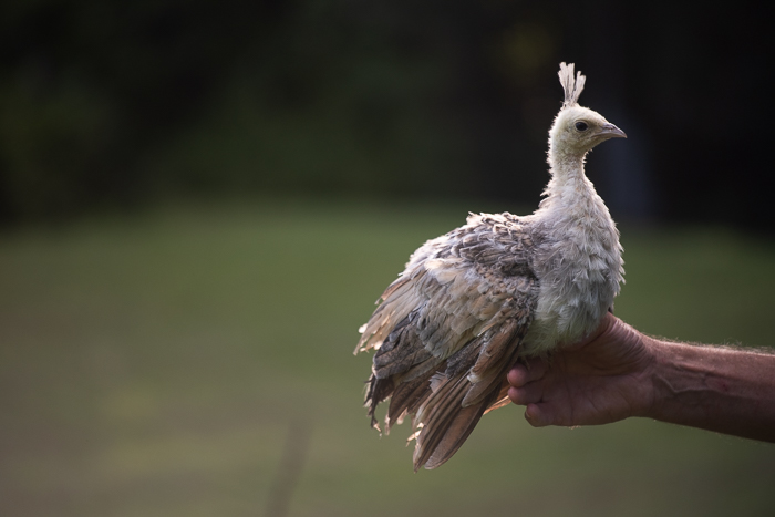 And this baby pea fowl came flying through the air right at my face when I pulled out my zoom lens to take its photo. I had to quickly put the camera down and put my arm up for it to land upon. Otherwise, I think it would have landed on my camera lens if not my head! It’s being hand raised by the friend that Keats worked for and is very tame!