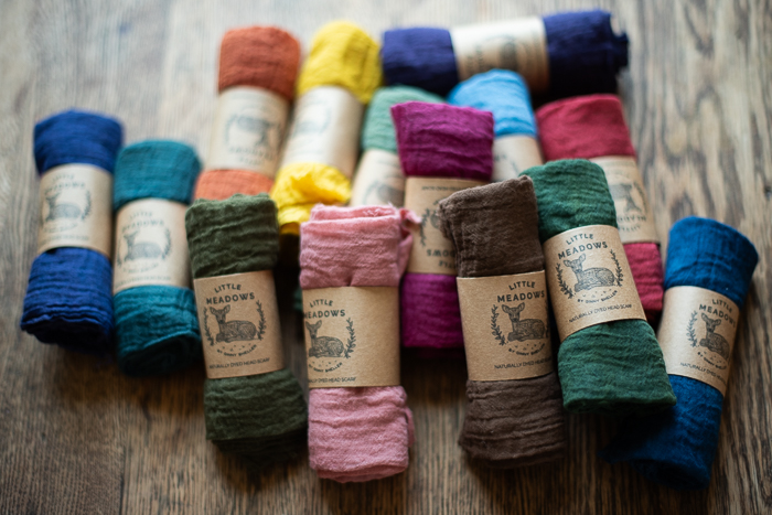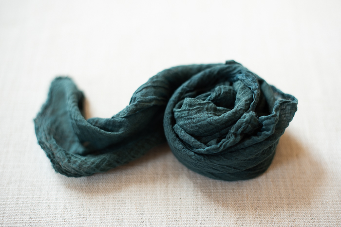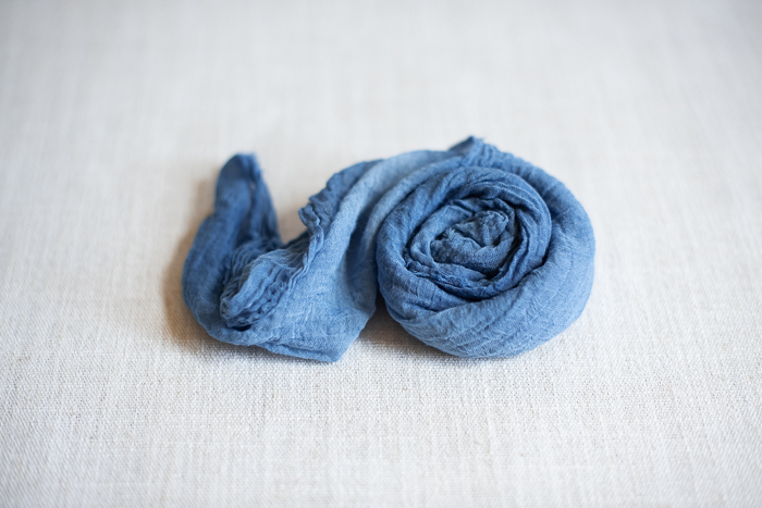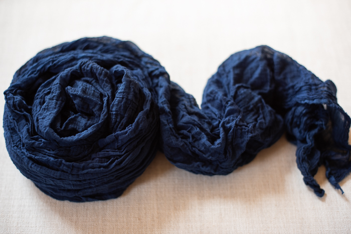 Most of the scarves available are the smaller kerchief sized scarves. I do have a handful of deep indigo full sized scarves available as well.