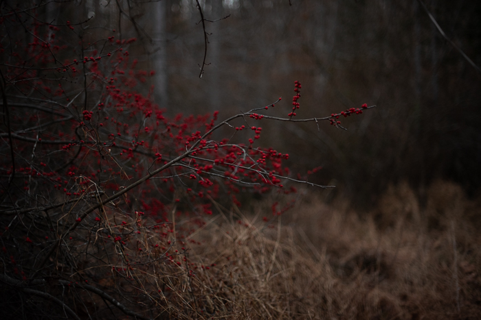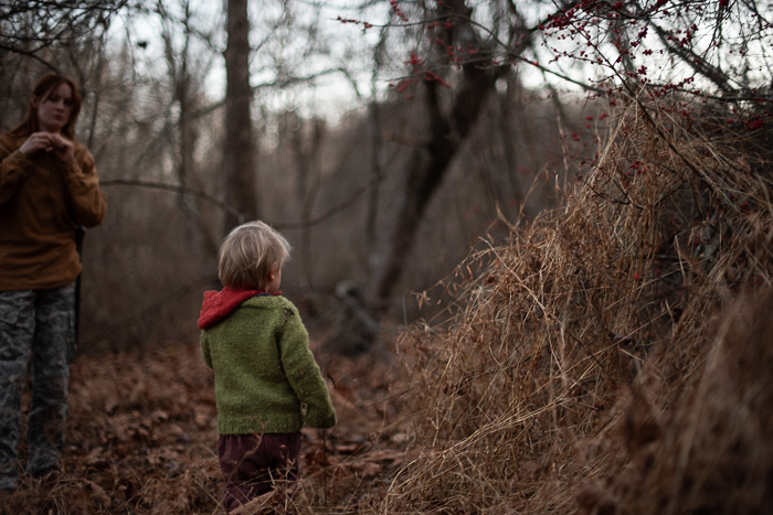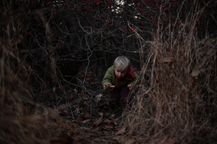 The walk to find the winterberries, deep in the swampy part of the woods, was my idea. In fact, I insisted they come with me. It was late afternoon and there wasn’t much daylight left. Once we arrived, it took Beatrix and her machete to penetrate the fortress of greenbrier in order to reach the red berries. Once through, Mabel was quick to climb a small tree and ask me to take her picture. Then she was back down and crawling under the shrubs, calling Ambrose to join her. She moves so fast. I was snapping photos, my back turned, when I heard the crash and Mabel’s cry. She had climbed back into the same small tree and then fallen. Faster to react, Beatrix was there in an instant, trying to help her up. Mabel was crying out as she has since she was a tiny child, “I’m okay! I’m okay!” But I knew that she wasn’t. I had never heard that kind of pain in her voice before. Her arm was seriously injured, it was getting dark, and we were far from home. Beatrix carried Mabel all the way back and mostly uphill, and I carried Ambrose along with the heavy weight of remorse.