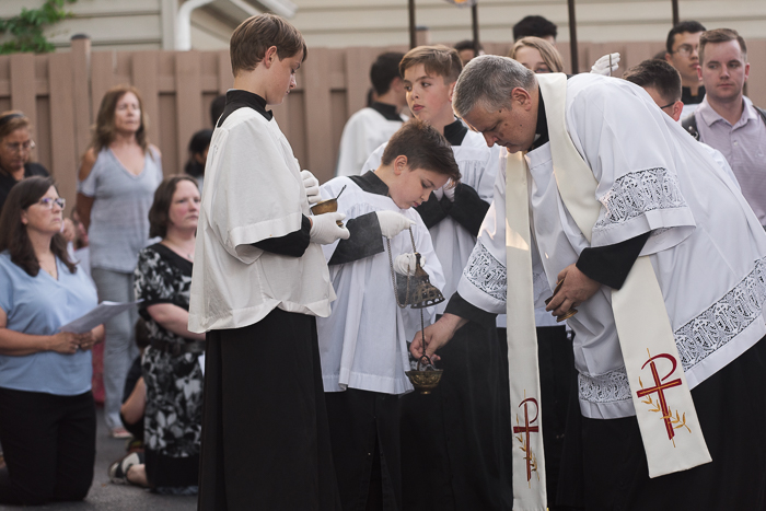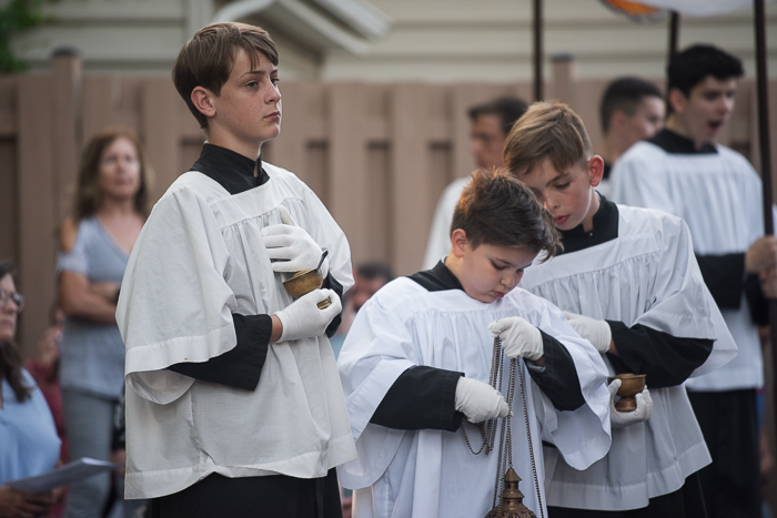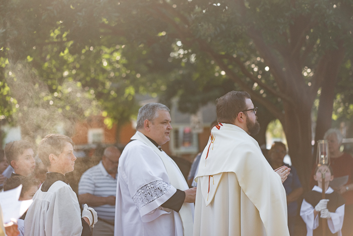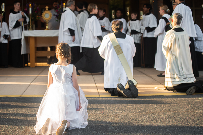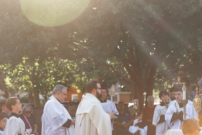 Our parish has a Corpus Christi procession for the Feast of Corpus Christi each year. I sometimes photograph events for our parish, and thought you might like to see these photos too. Silas and Job both processed with the other altar servers, with Silas being thurifer (carrying the incense) at the beginning. Mabel had recently received her First Holy Communion so she wore her dress from the day. This was our family’s first time to participate in a procession and it was such a beautiful experience!
